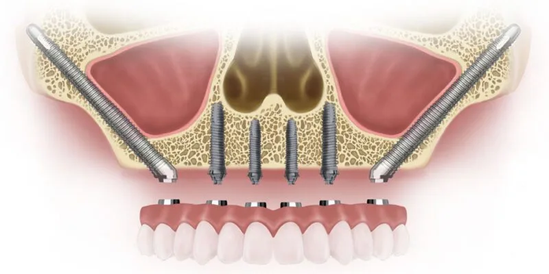 This procedure is typically used for a full-arch restoration (like an All-on-4) where two of the implants are zygomatic. The price comparison below reflects an All-on-4 setup using two zygomatic implants and two standard implants.